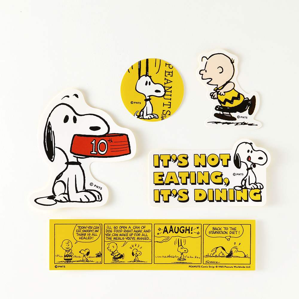 PEANUTS Cafeのロゴのモチーフになった、1965年10月2日のコミックをあしらったステッカー5枚セット。