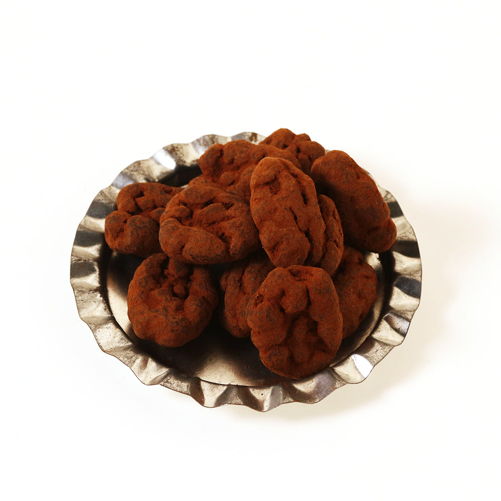 苦みがなくまろやかな味わいのピーカンナッツを、チョコレートでコーティングしココアパウダーで仕上げました。