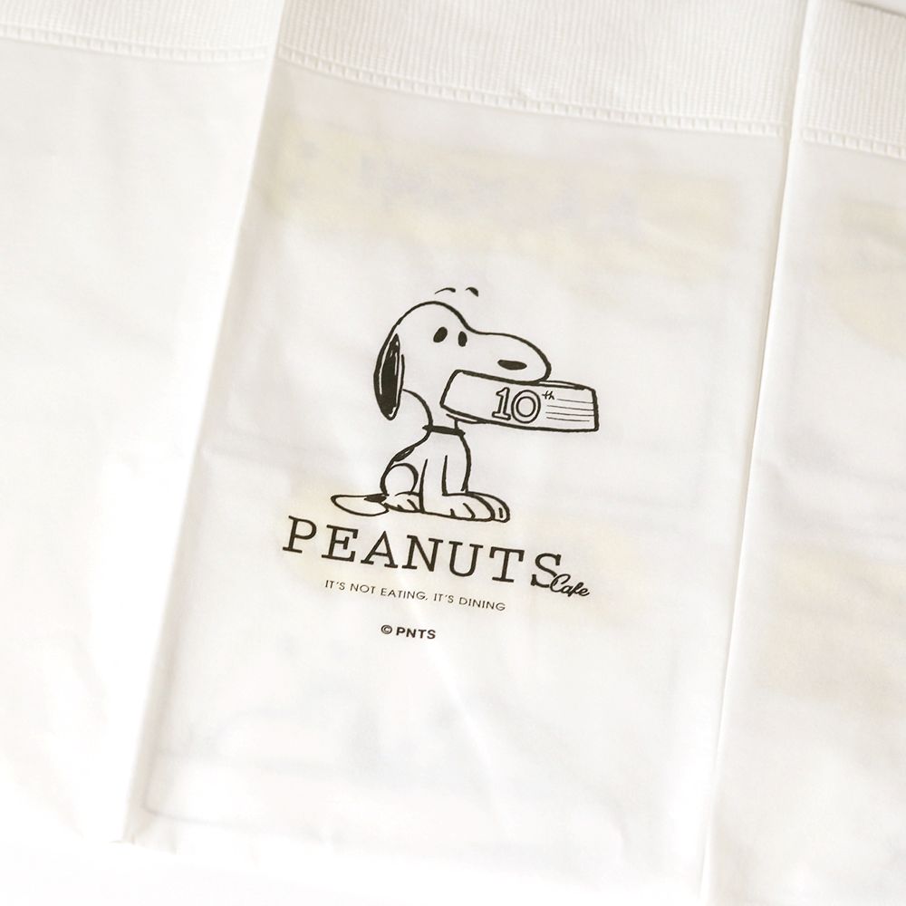 PEANUTS Cafe 10周年を記念して製作された、オリジナルロゴをあしらったアイテム。