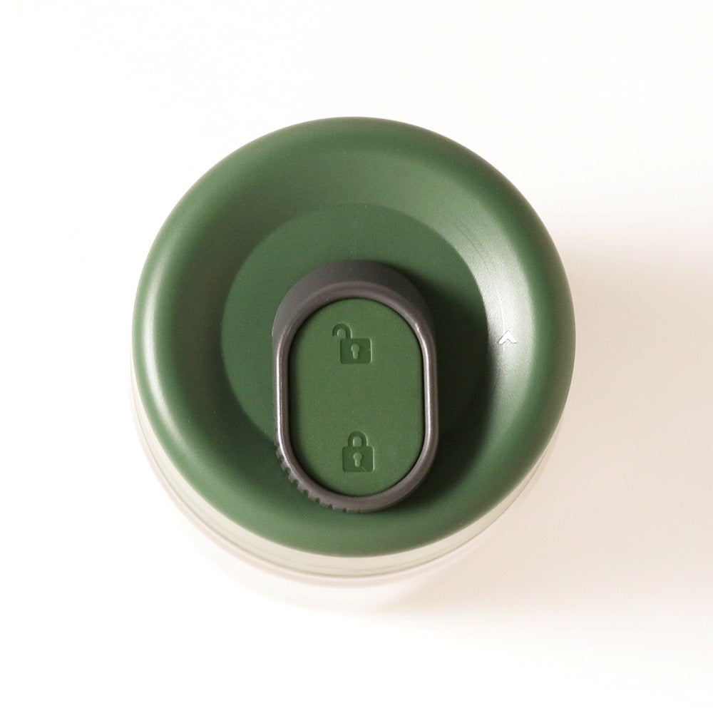 蓋はロック機能付きで漏れる心配がなく、持ち歩きや車での移動時も安心です。