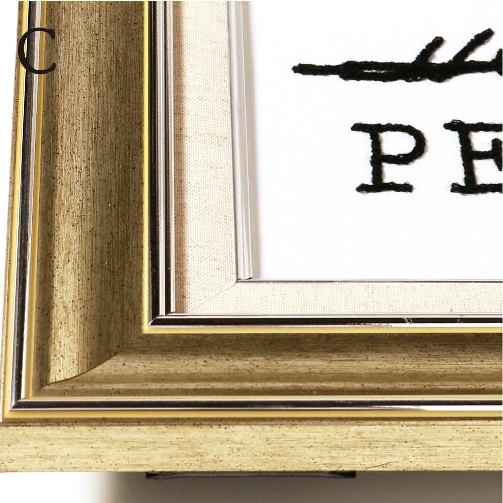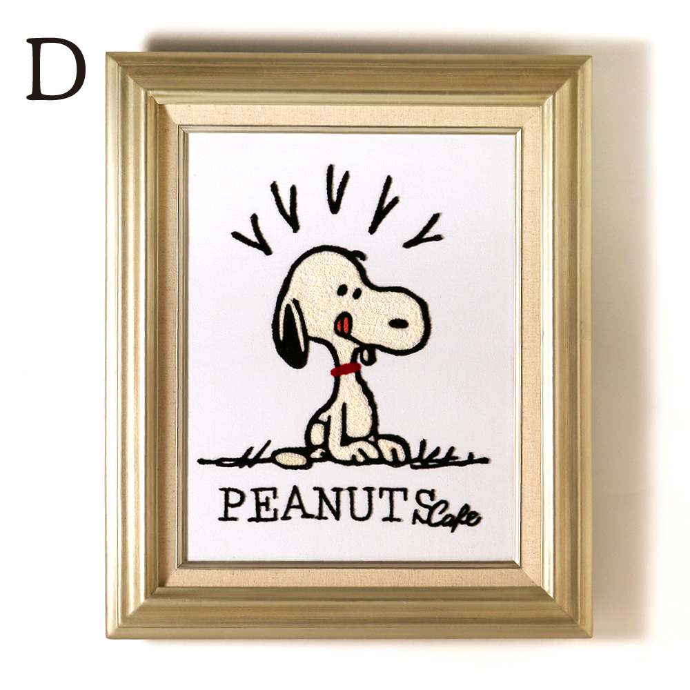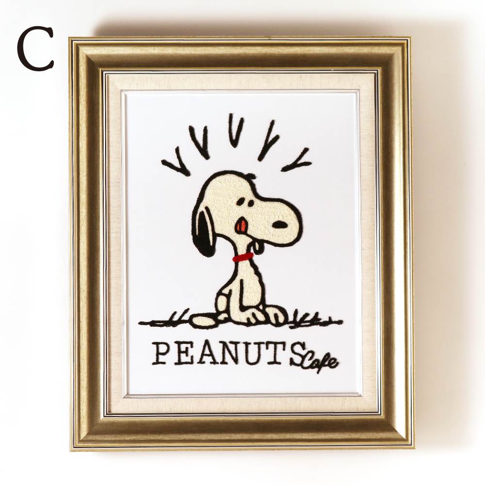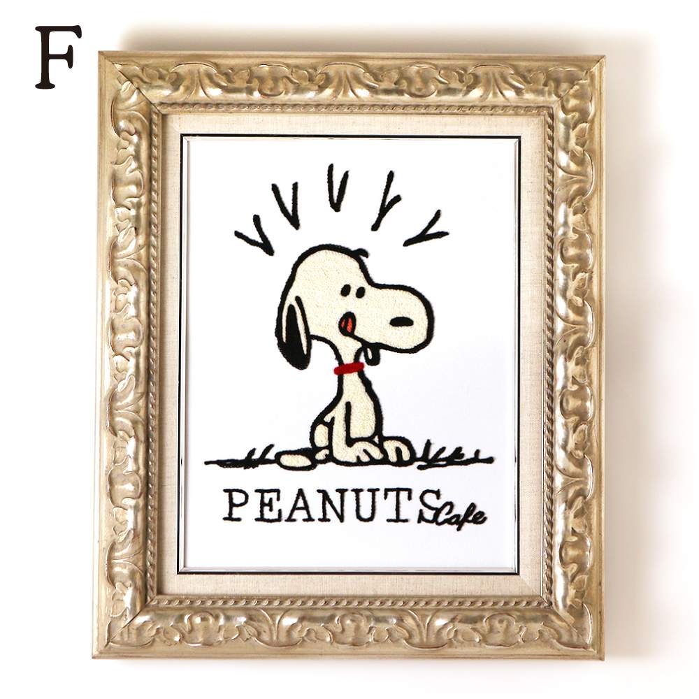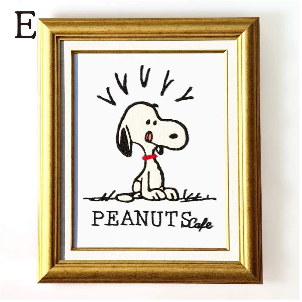 アンティークのフレームに飾られ、職人がハンドルミシンで一つひとつ丁寧にスヌーピーを描いた刺繡アート。