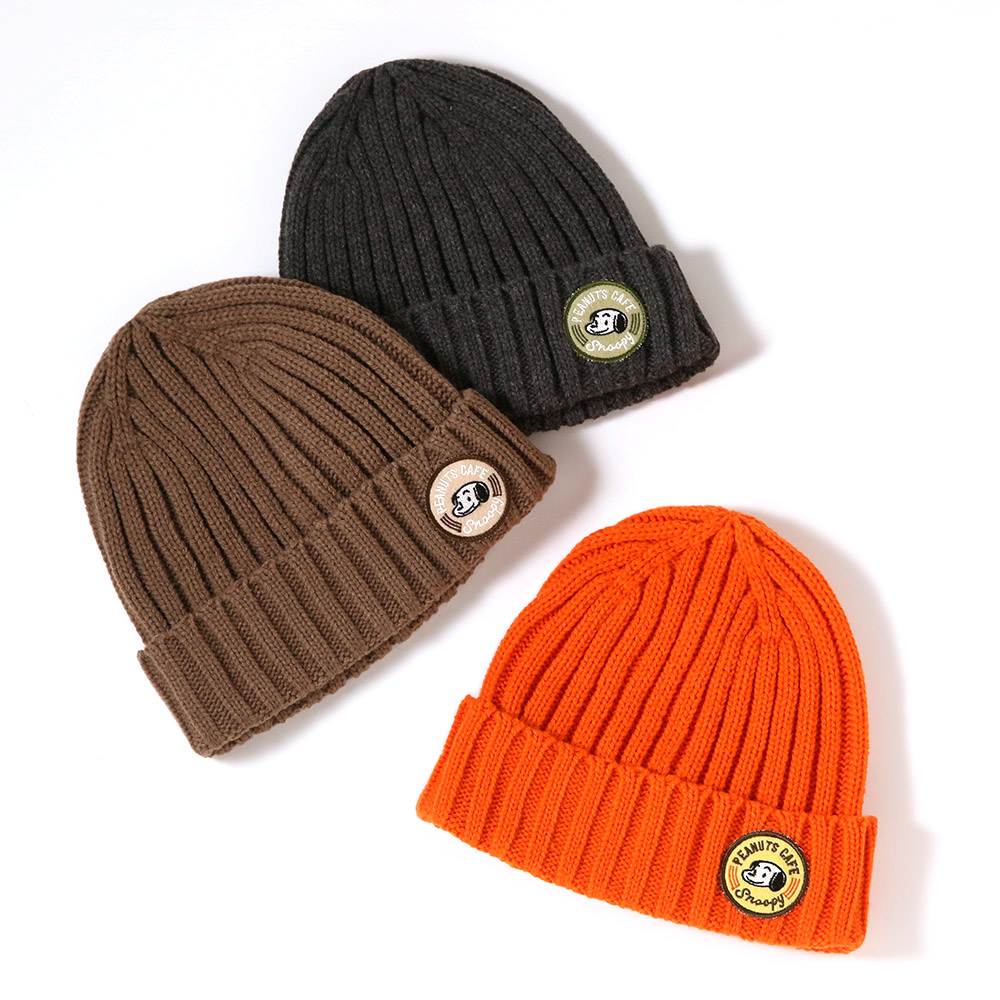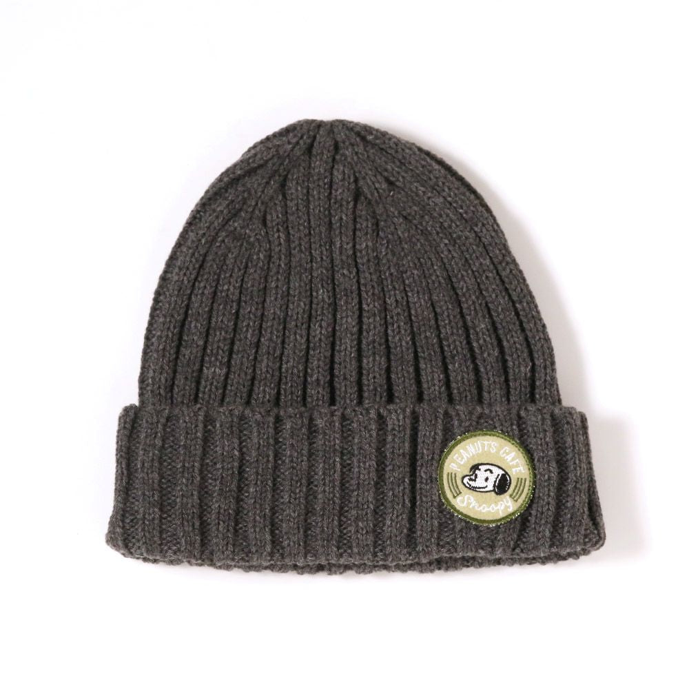 1950年代のスヌーピーのワッペンをあしらった、ローゲージのリブニットキャップ。