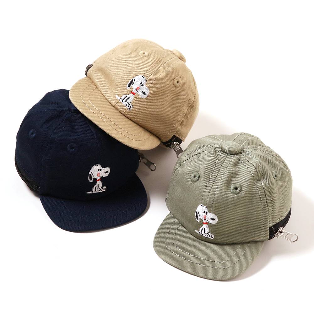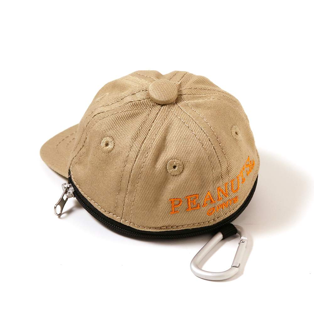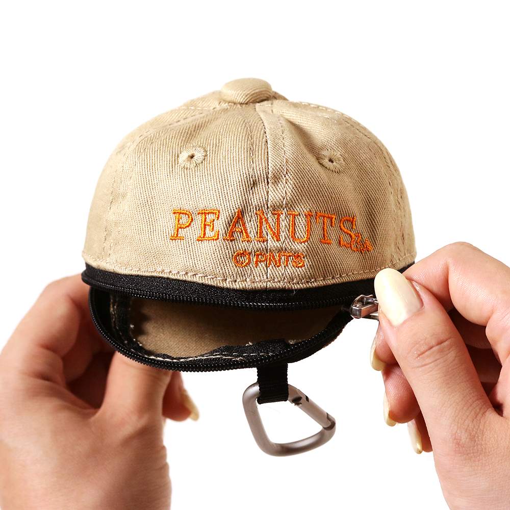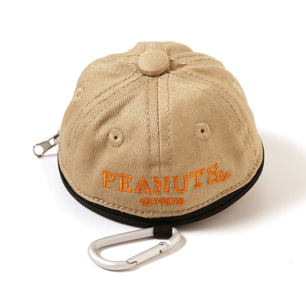 PEANUTS Cafeのロゴアートを施した、コットンツイル素材のキャップ型ミニポーチ。